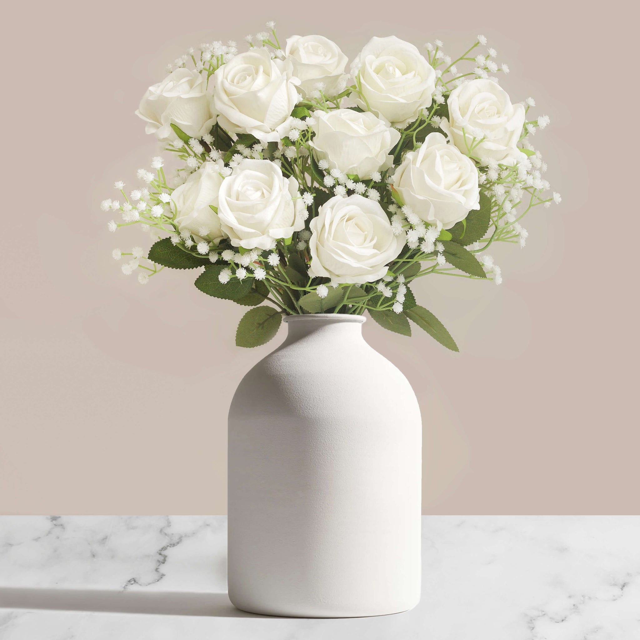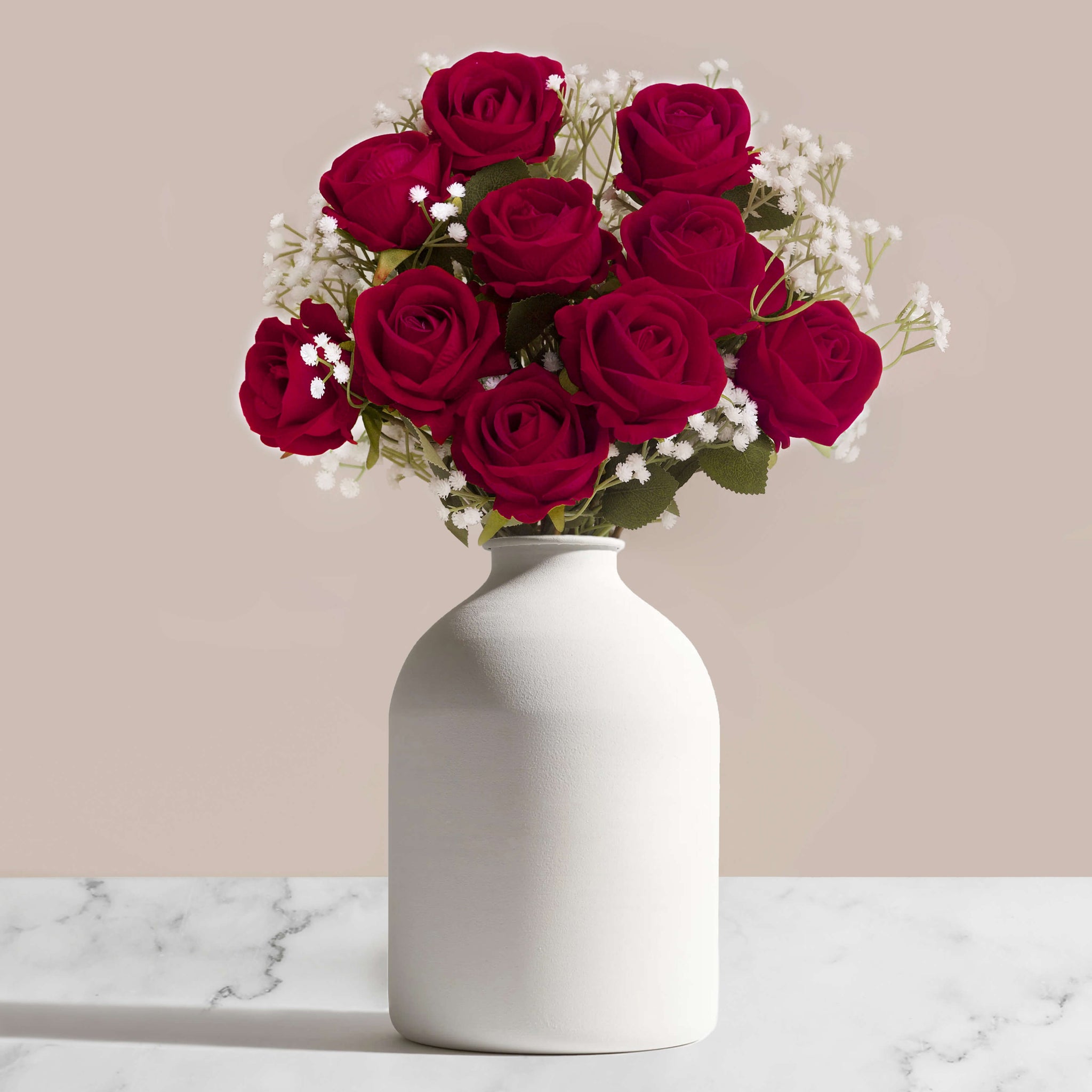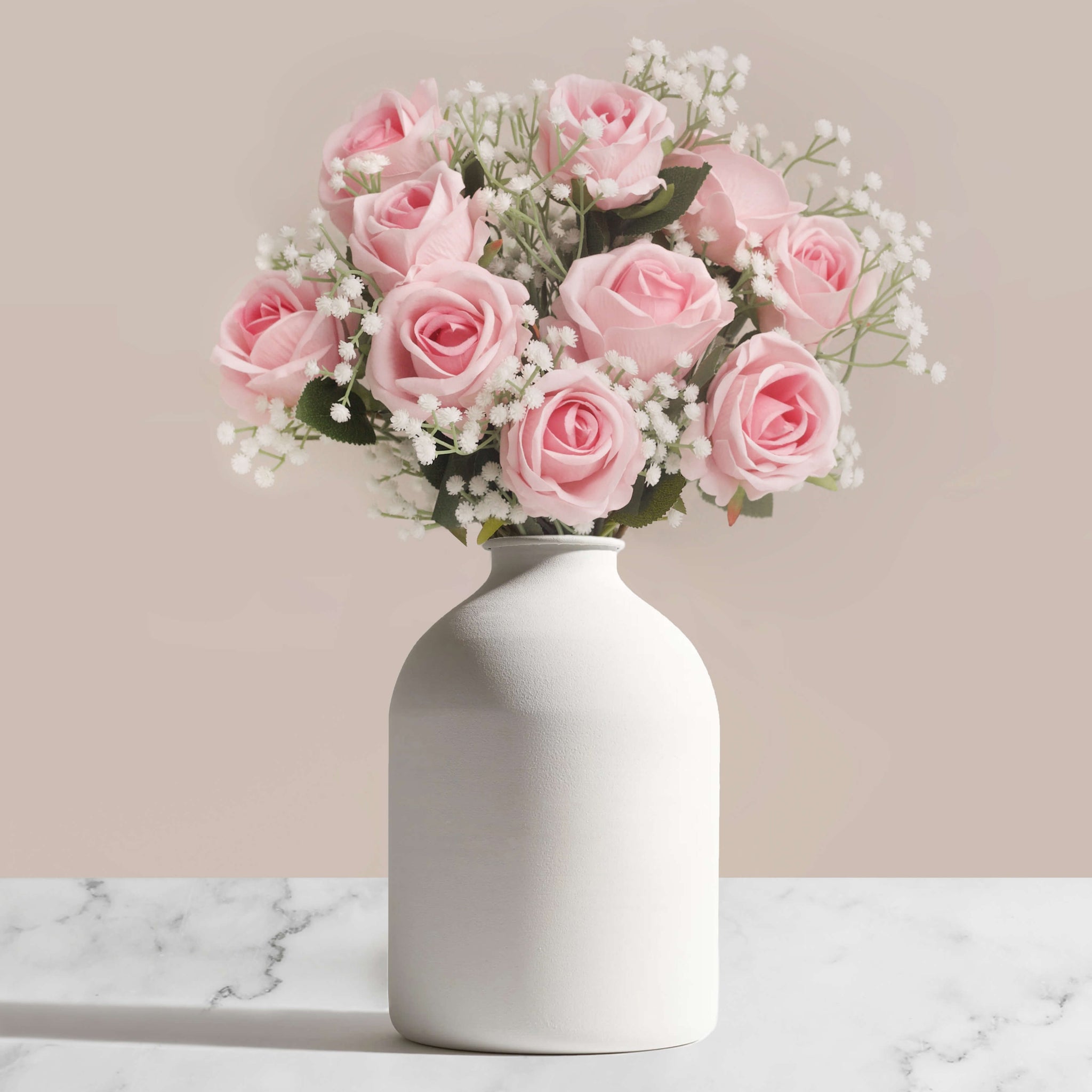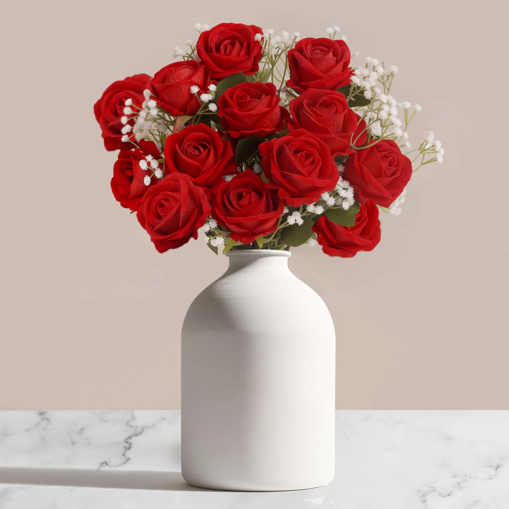 Our new Faux Rose Arrangements are the perfect addition to your home. They come in a bunch of 24 stems Roses, and 10 stems of Gypsophila. The combination of Roses and Gypsophila creates a very delicate yet beautiful look. The perfect gift for a loved one or yourself.