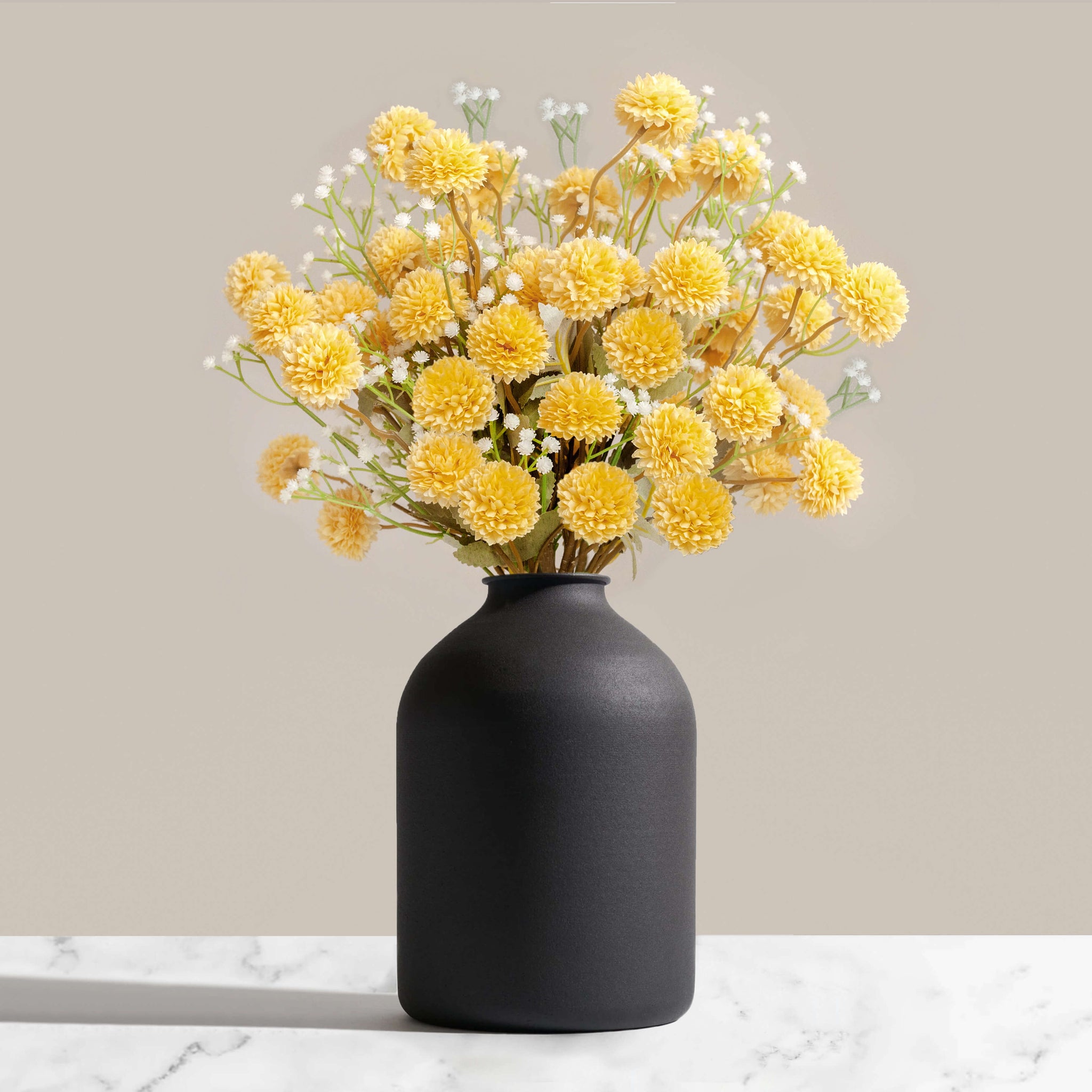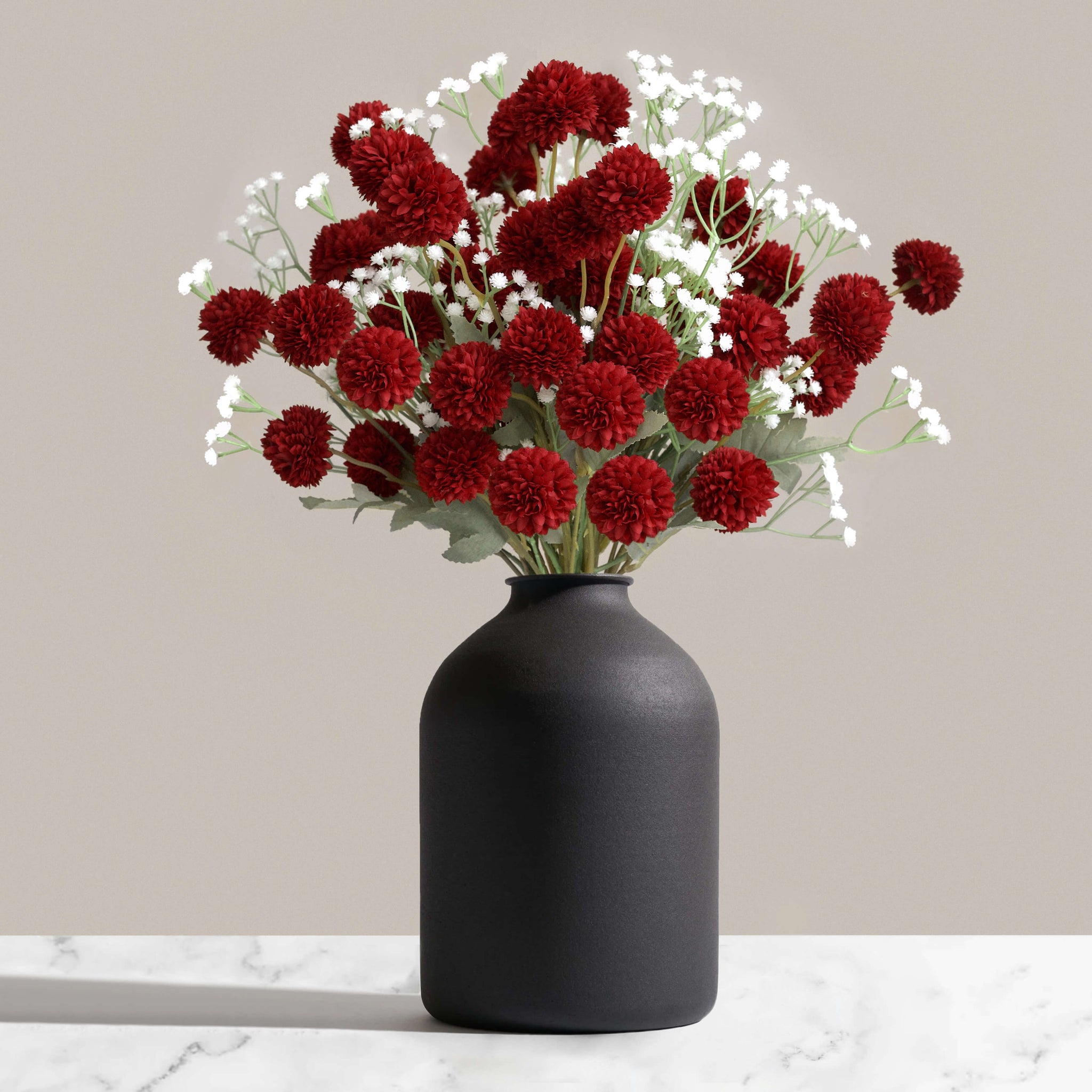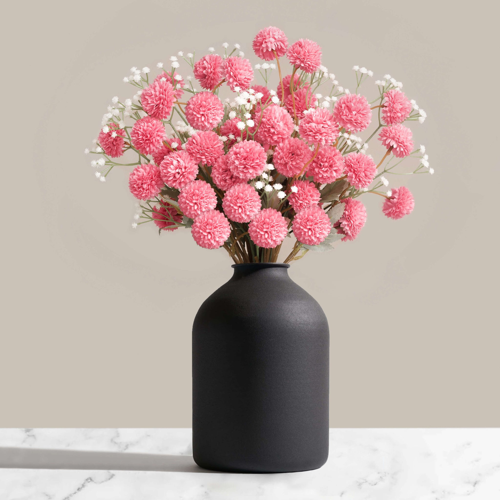 Our new Faux Kiku arrangements are a combination of our best selling Kiku Flowers, paired with Gypsophila Flowers to produce a beautiful flower arrangement. They come in a bunch of 20 stems in total. Available in 6 stunning colours.