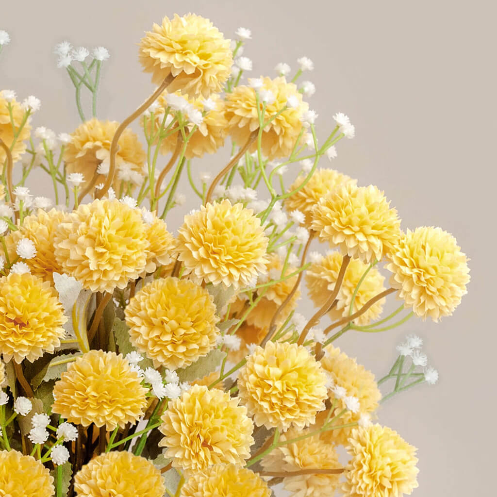Our new Faux Kiku arrangements are a combination of our best selling Kiku Flowers, paired with Gypsophila Flowers to produce a beautiful flower arrangement. They come in a bunch of 20 stems in total. Available in 6 stunning colours.